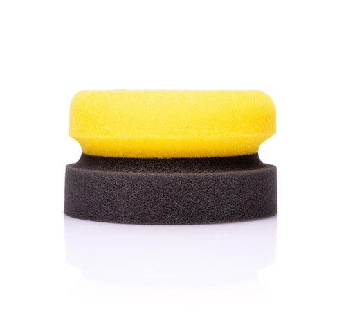 Aplicatorul manual Work Stuff Handy Wax Applicator Plus combină doi bureți cu densități diferite: partea neagră, ideală pentru aplicarea de ceară și tratamente pentru cauciuc și piele, și partea galbenă, perfectă pentru lucrul cu compound, polish, paint cleaner sau agenți de curățare a vopselei.