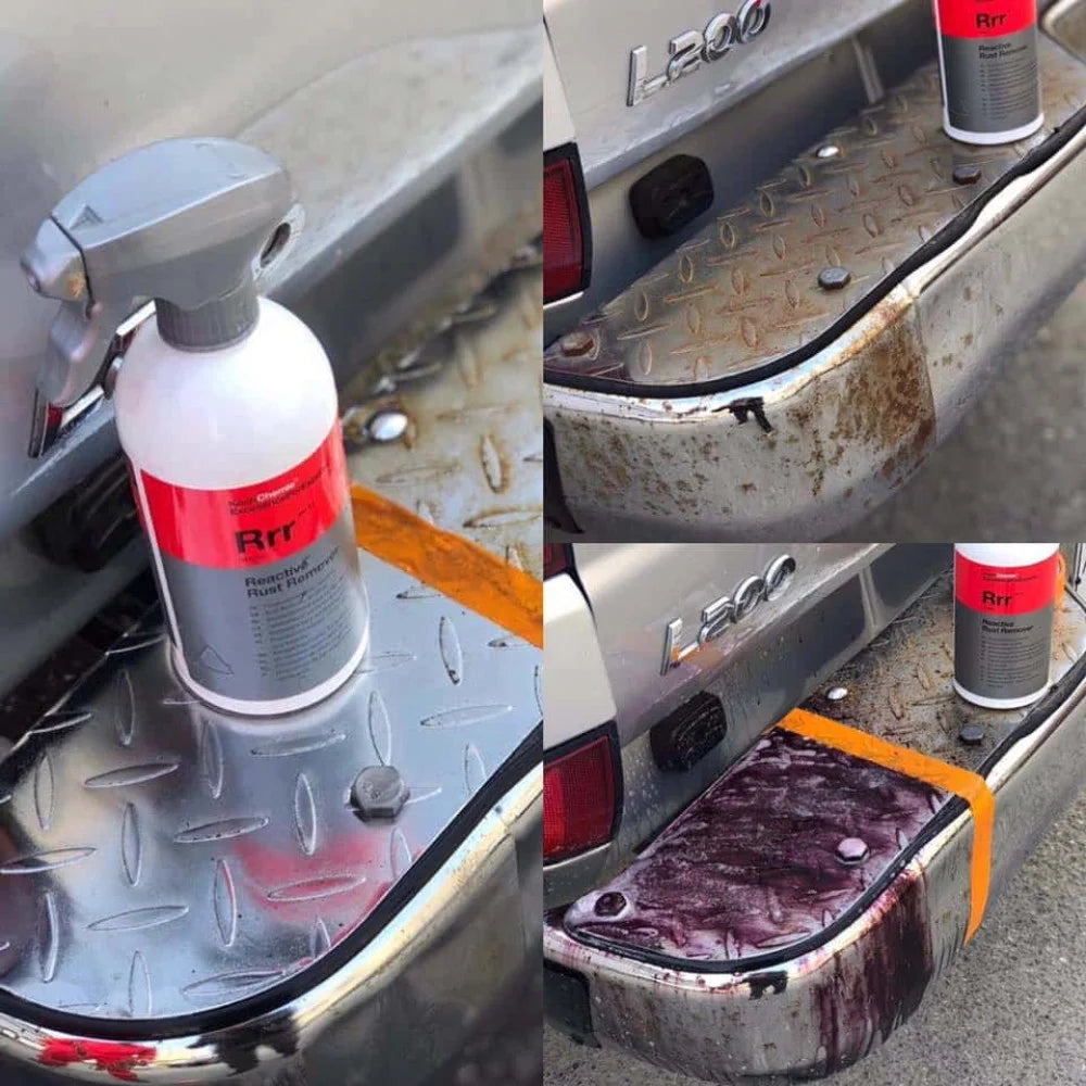 Solutie Inlaturare Rugina Koch Chemie Reactive Rust Remover Rrr, 500 ml isi schimba culoarea in violet imediat ce incepe sa dizolve contaminantii. Surfactantii speciali din formula imbraca si dizolva mizeria pentru a fi usor de clatit mai apoi.