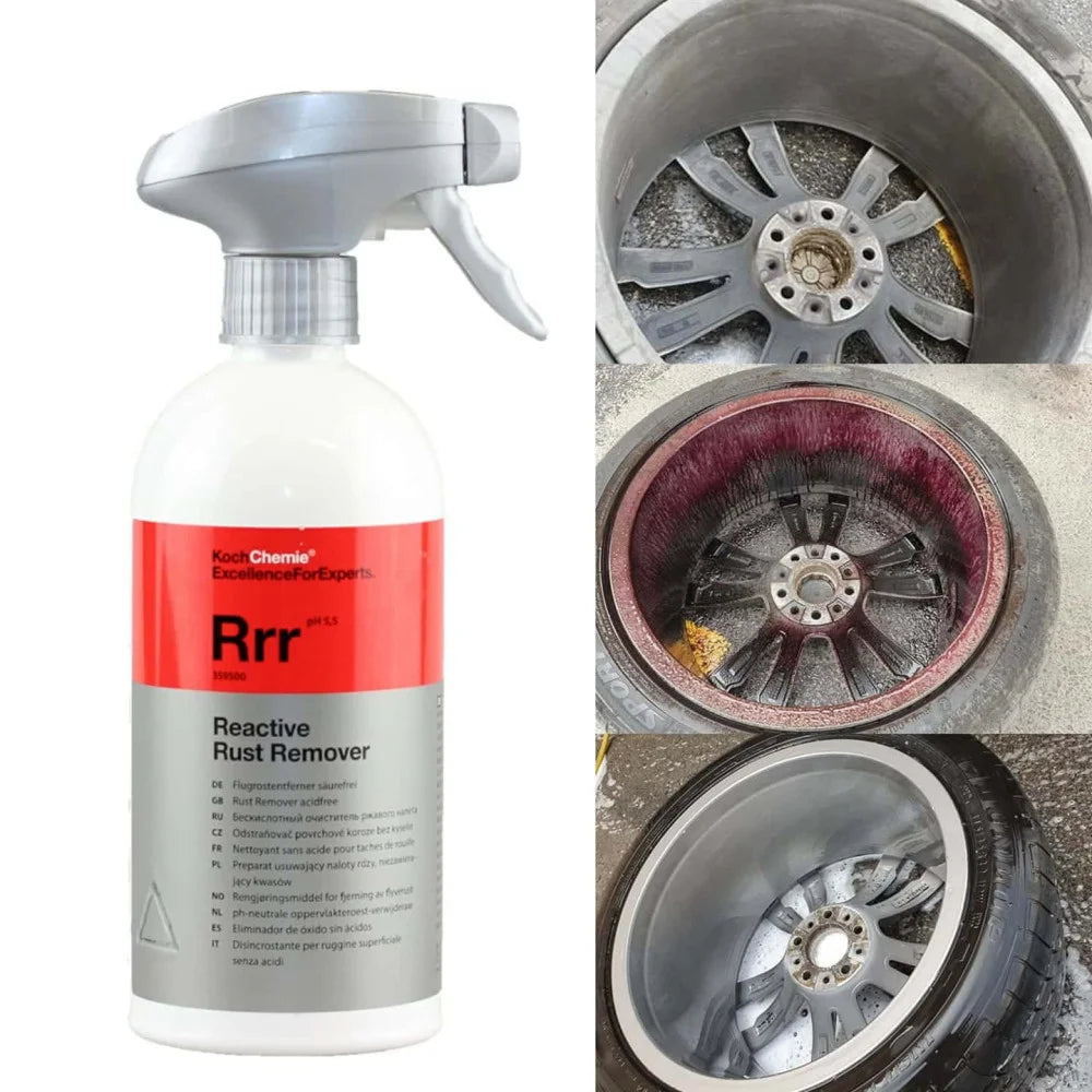 Solutie Inlaturare Rugina Koch Chemie Reactive Rust Remover Rrr, 500 ml este un agent cu pH neutru ce inlatura rugina de suprafata dar si particulele metalice, inclusiv praful de placute. Bland cu toate tipurile de materiale. Componentele sunt armonizate pentru a permite un timp lung de contact si inmuiere, astfel incat agentii reactivi din Koch Chemie Reactive Rust Remover sa dizolve eficient particulele de murdarie si rugina.